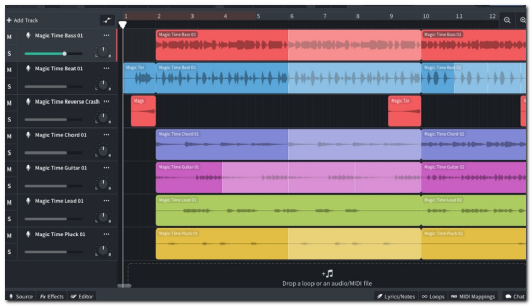 무제한 오디오 기록 및 MIDI 트랙으로 영감을 얻을 수 있으며 다양한 곡을 편집, 믹싱 작업, 마스터링 도구를 활용한 곡 작업이 가능해서 많은 음악 입문자들이 이용하는 프로그램 중 하나다.