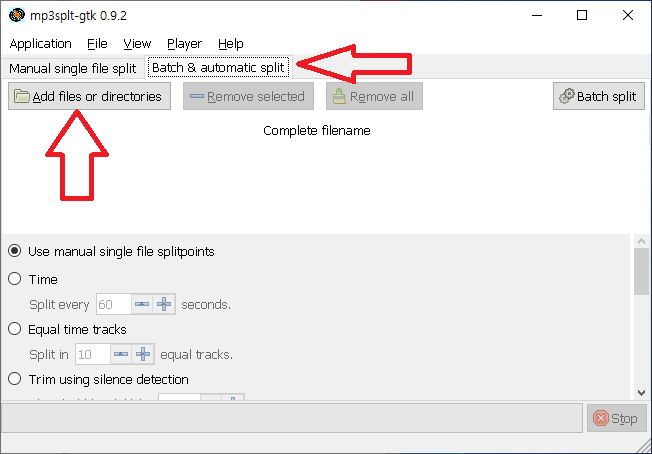 설치가 완료되면 프로그램을 실행한다. 상단 메뉴에서 Batch & automatic split -> add files or directories 선택
