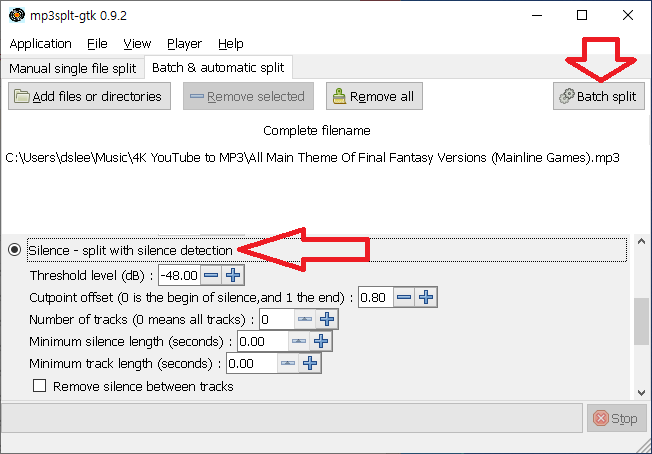 노래가 추가되었다면 Silence - split with silence detection을 선택한다.