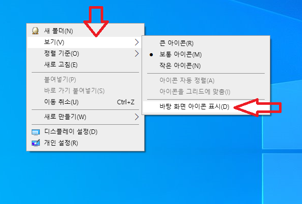1) 윈도우10 바탕화면 아이콘 없어짐 해결법