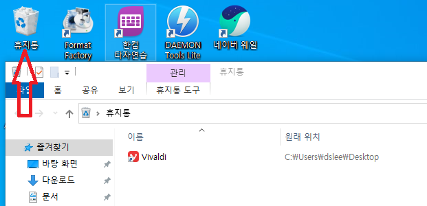 3) 윈도우10 바탕화면 아이콘 휴지통 복구